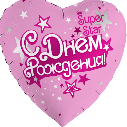 Шар сердце «С днём рождения, Super Star»