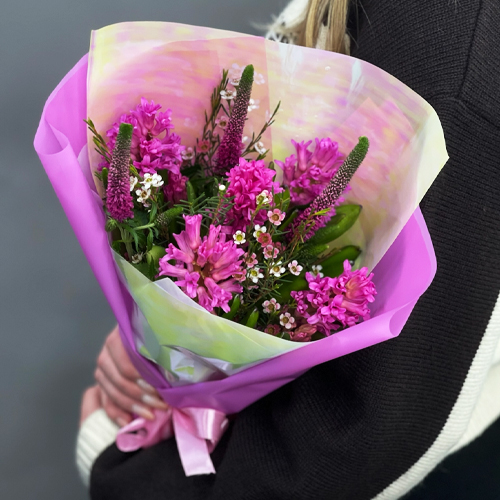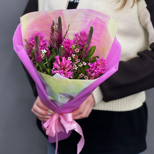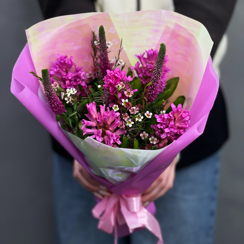 Букет "Вспышка" из гиацинтов, хамелациума и вероники