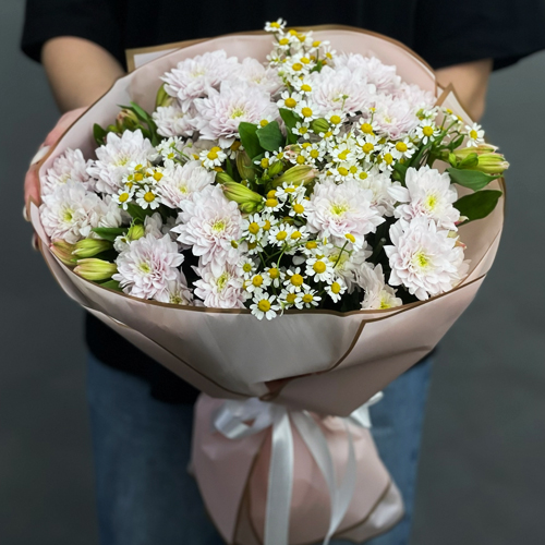 Букет "Сиэтл" из хризантем, альстромерий и ромашек