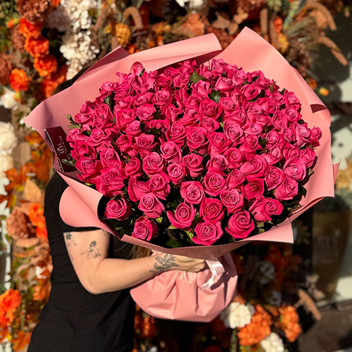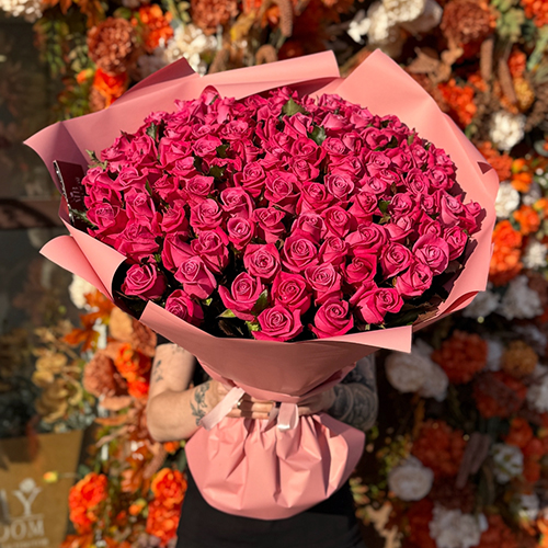 Букет "Необыкновенная" из 101 малиновой розы (60 см)