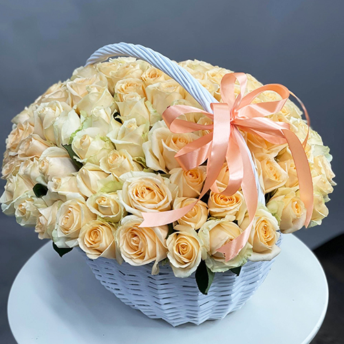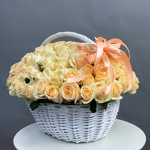 Композиция в корзине из 101 розы Аваланж (50 см)