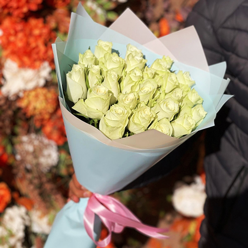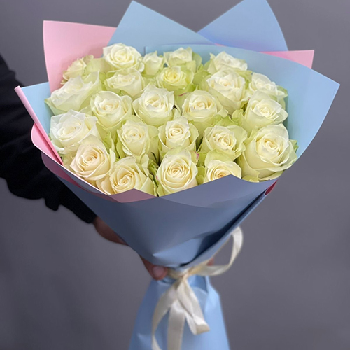 Букет 25 белых роз Кения (50 см)