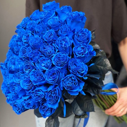 Букет из 51 синей розы Эквадор под ленту (70 см)