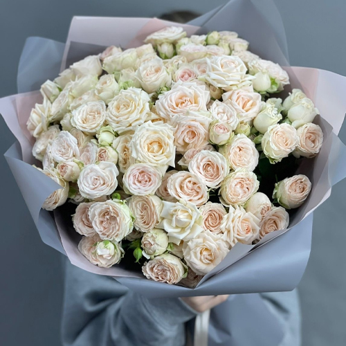 Букет "Кремовый микс" из 25 кустовых роз (50 см)