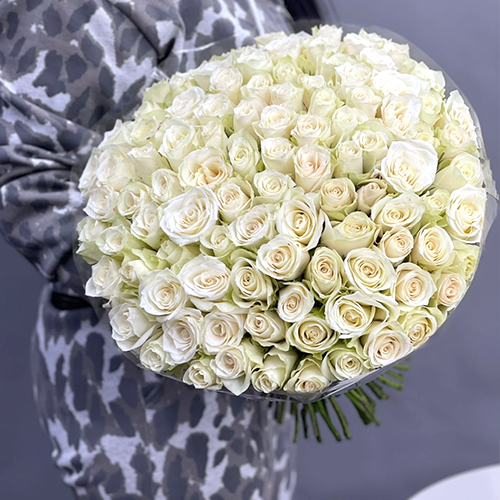 Букет 101 белая роза Кения (40 см)